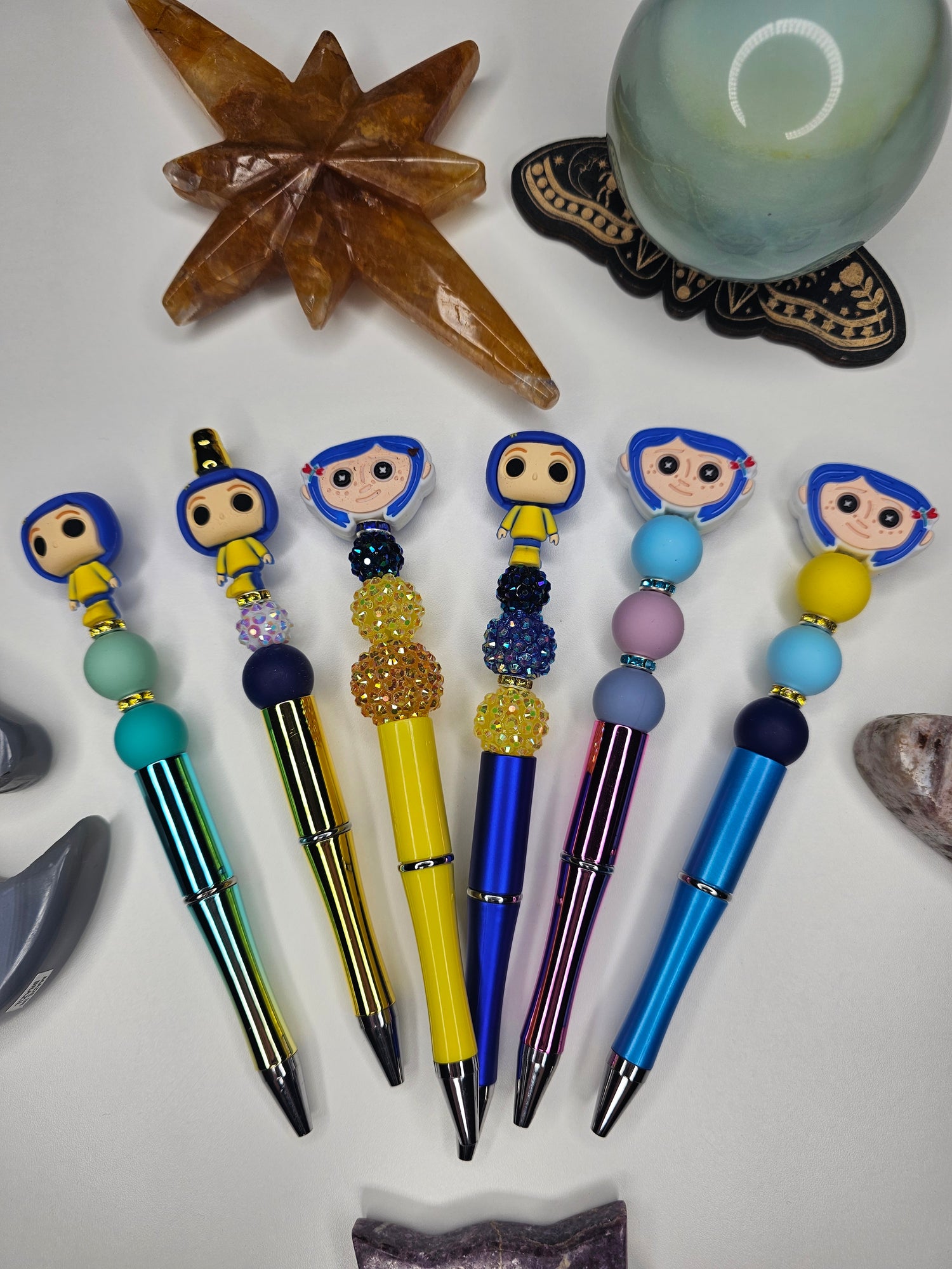 Coraline inspired Beaded pens. These are black ink ballpoint pens. Please make your selection below! All pens come with one refill.